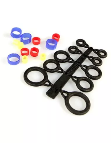 Drennan Hook Ups zijn zachte rubber ringen die u eenvoudig op uw topset kunt schuiven. Ideaal om de lijn aan vast te haken als u de topset niet gebruikt , doordat er verschillende maten worden meegeleverd stelt het u in staat uw gevoelige topelastiek uit de zon te huden. U kunt ze natuurlijk ook als diepte markering gebruiken.