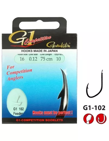 | Uitvoering | GAMAKATSU G1-102 Feeder 75cm 12/.14, GAMAKATSU G1-102 Feeder 75cm 14/.12, GAMAKATSU G1-102 Feeder 75cm 16/.12, GAMAKATSU G1-102 Feeder 75cm 10/.16 |
