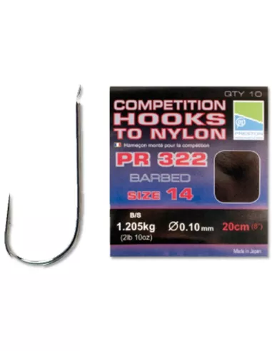 | Uitvoering | PRESTON COMPETITION 322 HOOKS TO NYLON SIZE 16 (10), PRESTON COMPETITION 322 HOOKS TO NYLON SIZE 18 (10), PRESTON COMPETITION 322 HOOKS TO NYLON SIZE 14 (10) |